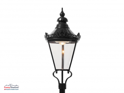 Our Huxley lantern is manufactured from aluminium and is available with a decorative crown to beautifully replicate classic Victorian styling both day and night. Unlike our Kingsley lantern, the Huxley is available with all four of our optic options including our patented Varoptic®.